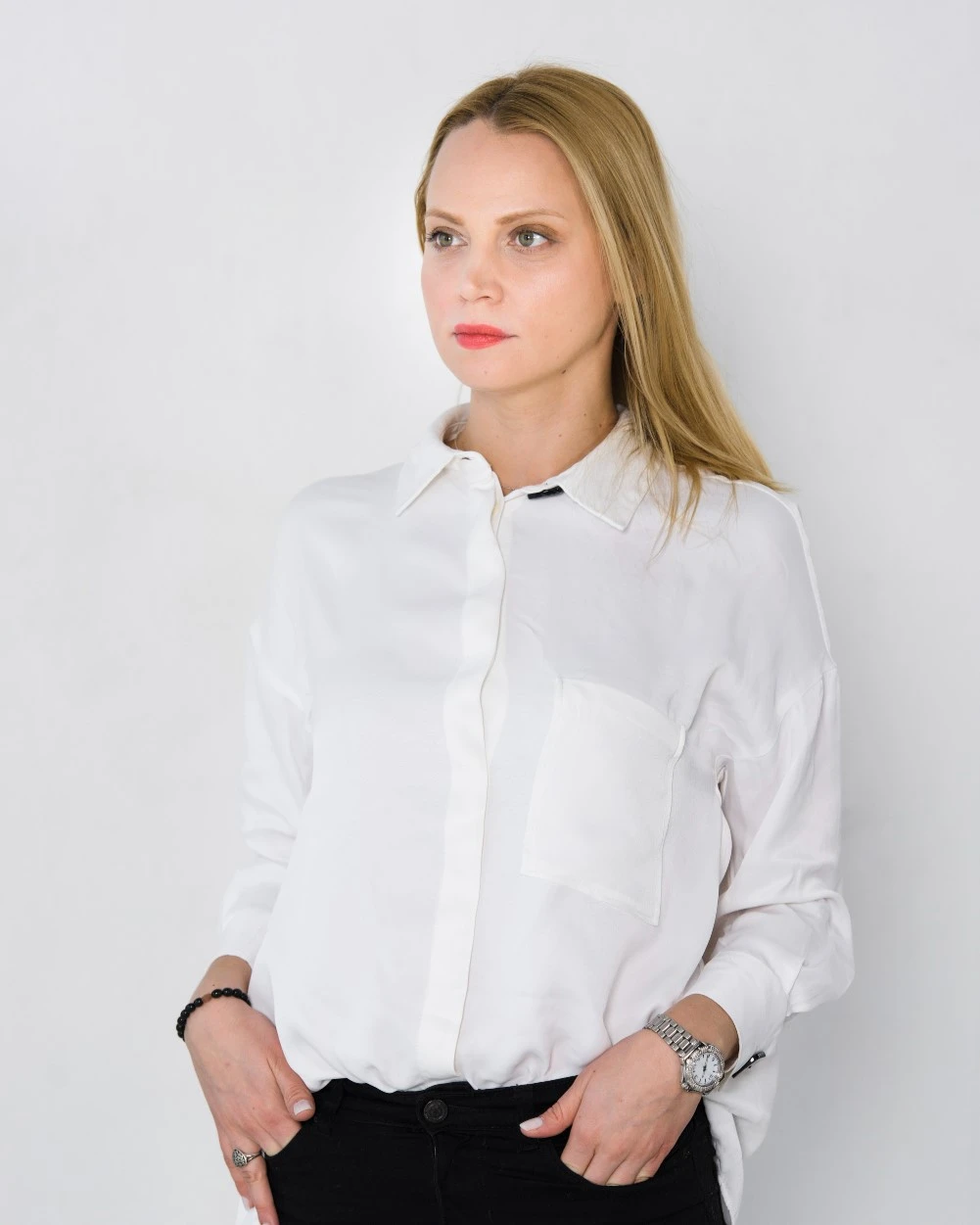 Camisa blanca clásica con bolsillos